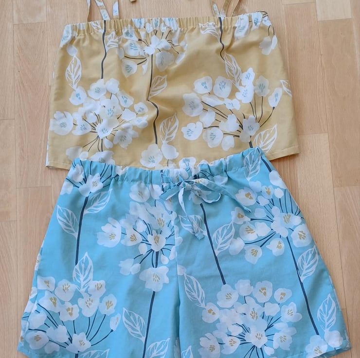 Pyjamas playsuit, playsuit blue and yellow shorts and cami top set nightware approx size 12