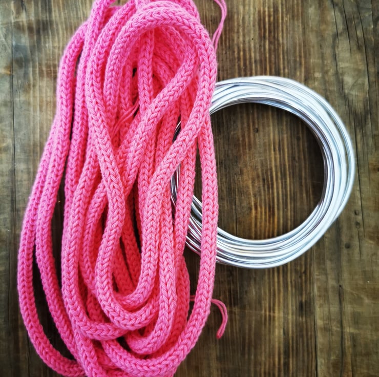 Create personalized knitted names and charming sayings effortlessly by incorporating wire into this hollow tricotin.