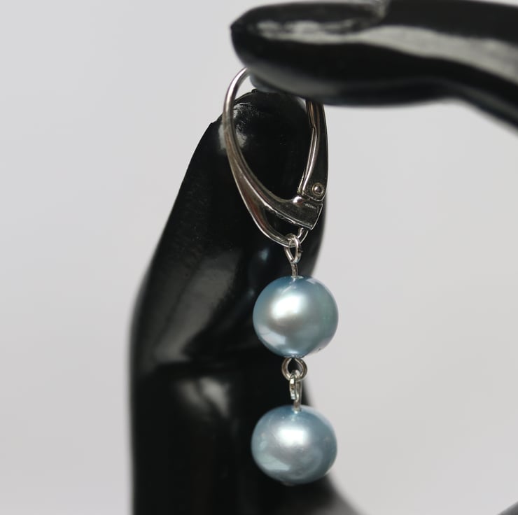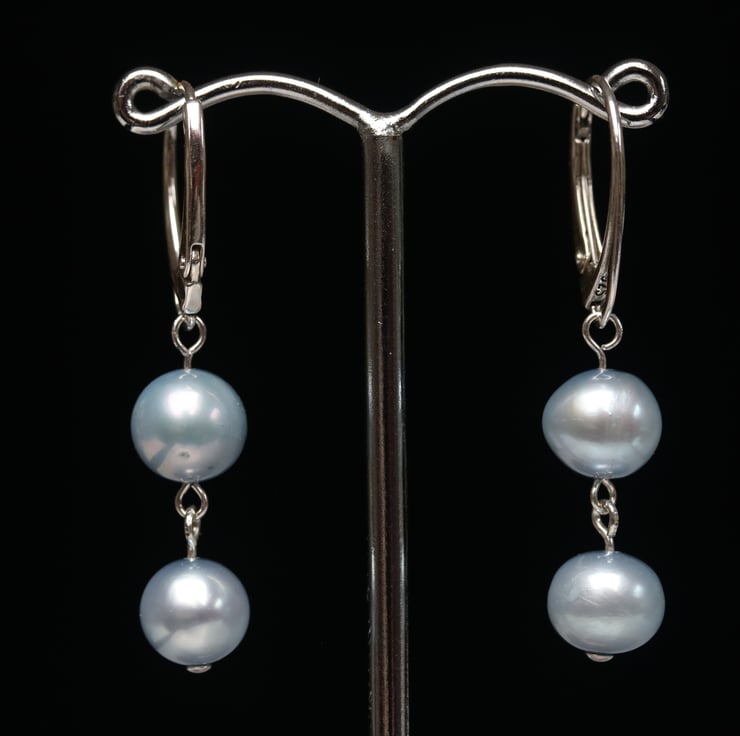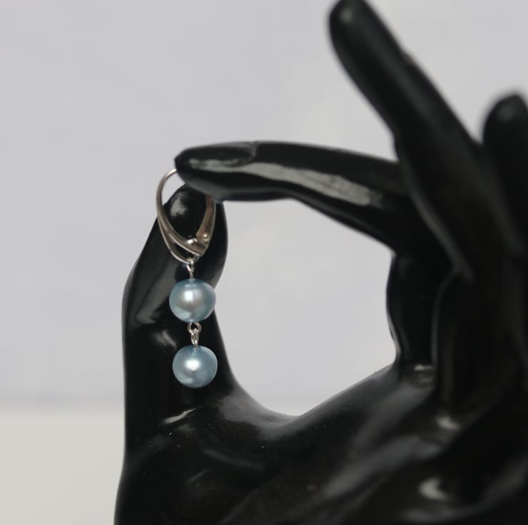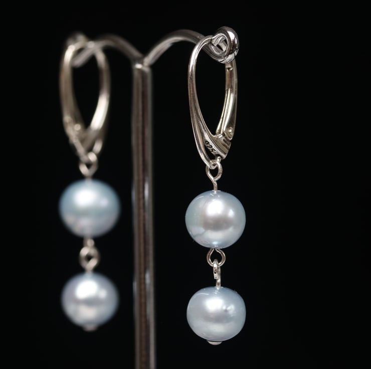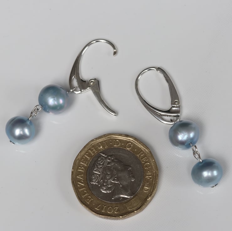 Each pearl is around 8mm in diameter with a smooth surface, good lustre and only minimal flaws. I have used sterling silver throughout in making these earrings and they hang from high quality sterling silver lever back ear wires.