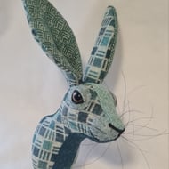 The tail is plaited from red wool. Her whiskers are teal wool. Her eyes are hand dyed buttons.