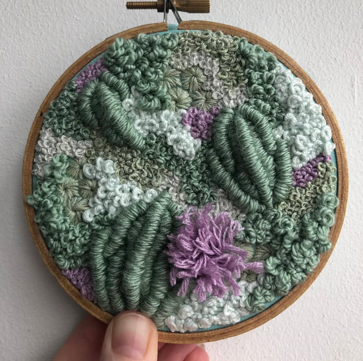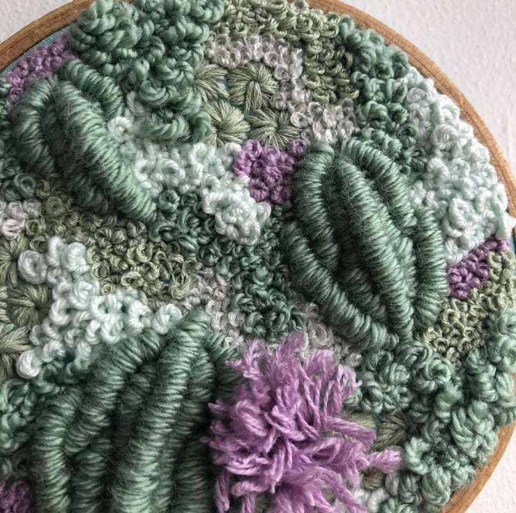 Dartmoor a 4 inch one of a kind hand embroidered home decor art piece. Embroidery thread and yarn has been worked together in an abstract pattern creating a piece of art which is both eye catching and unique