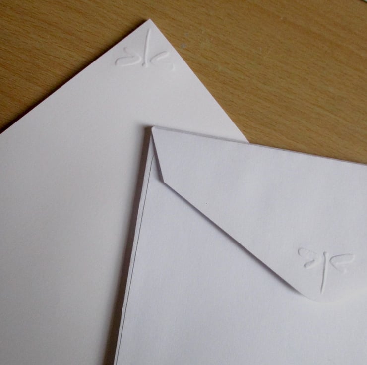 Stylish and minimal embossed Dragonfly writing paper set, consisting of,