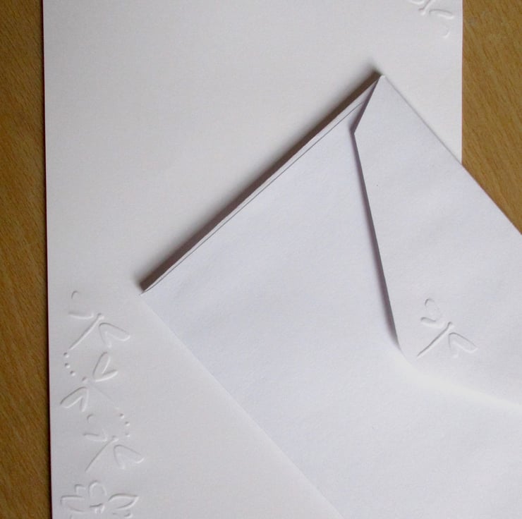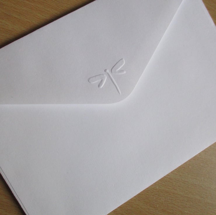 The envelopes have a a matching embossed dragonfly on the flap.