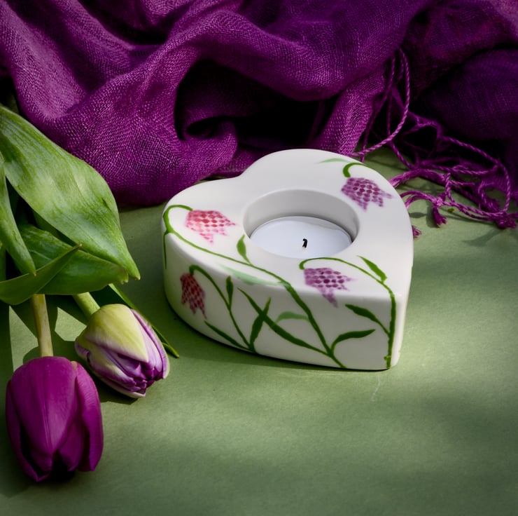 Snake’s Head Fritillary Tea Light Holder - Hand Painted