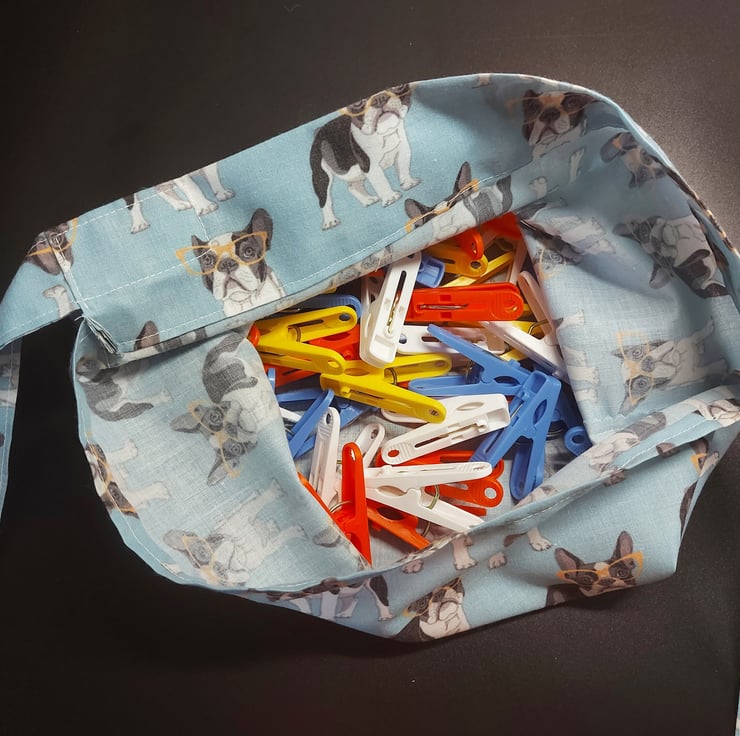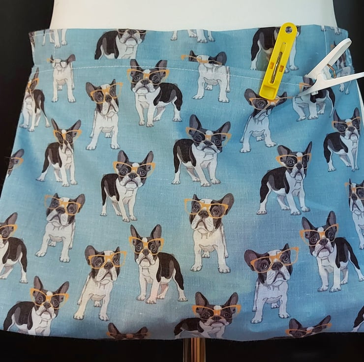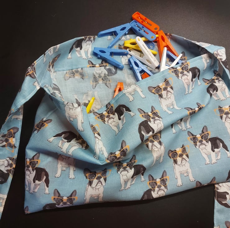 Fabric peg apron - peg pinny Handmade wearable peg bag French Bulldogs, Puppies,