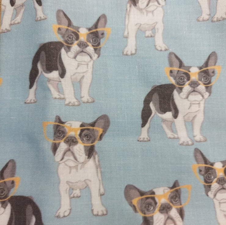 Gorgeous soft feel fabric with French Bullies on in an Blue colour other colours are available in my shop