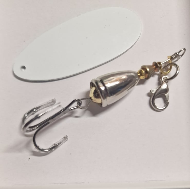 This lurespinner is 11g in weight, full length is 13.5cms and the printed area is 5.5cms approximately, and come with a treble hook.