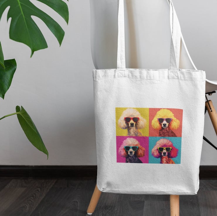 Add a splash of colour and personality to your daily outings with this eye-catching tote bag featuring a Poodle in vibrant pop art style.