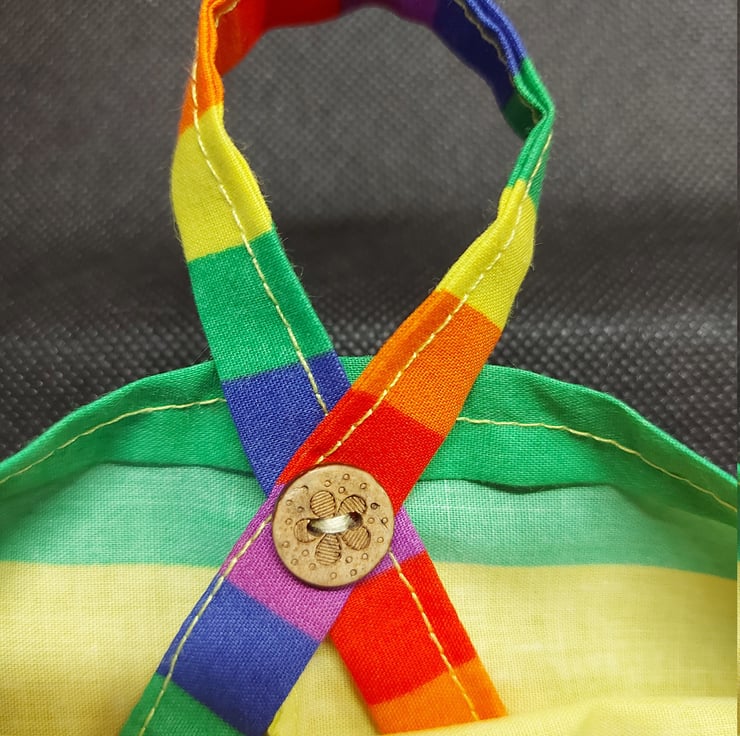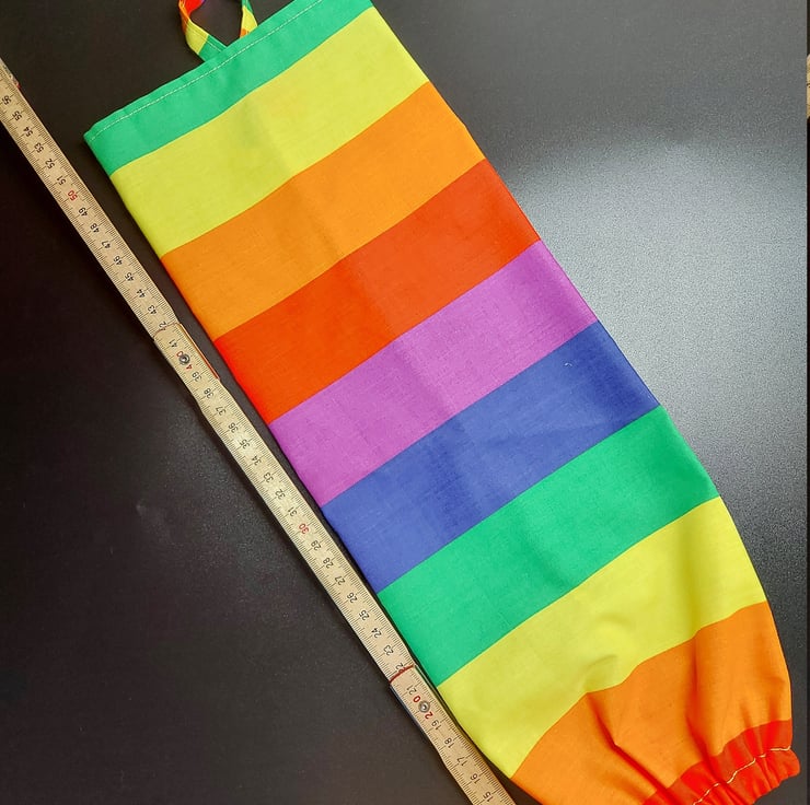Carrier bag holder Handmade fabric bag tidy Bright rainbow fabric large stripe b
