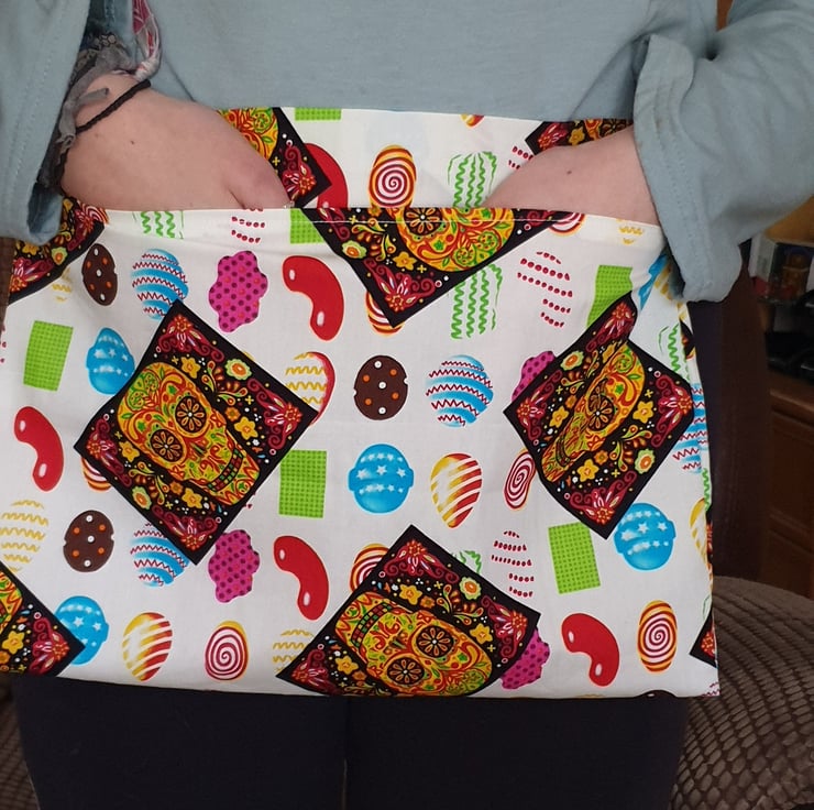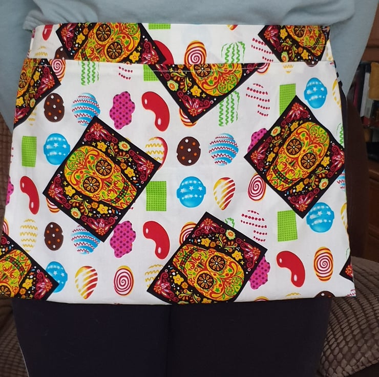 Handmade fabric peg apronpinny wearable peg bag Mexican sugar skulls & candy fab