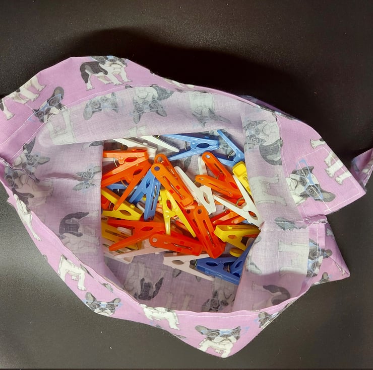Fabric peg apron - peg pinny Handmade wearable peg bag French Bulldogs, Puppies,
