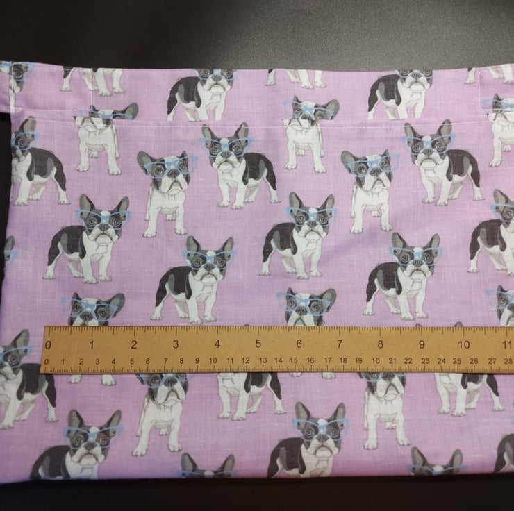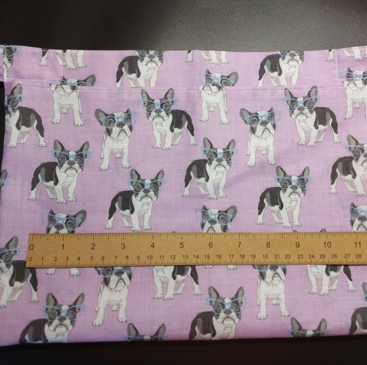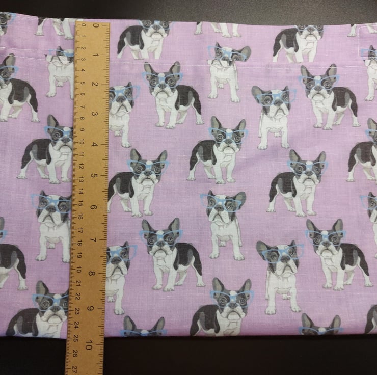 Gorgeous soft feel fabric with French Bullies on in a dusky purple colour other colours are available in my shop