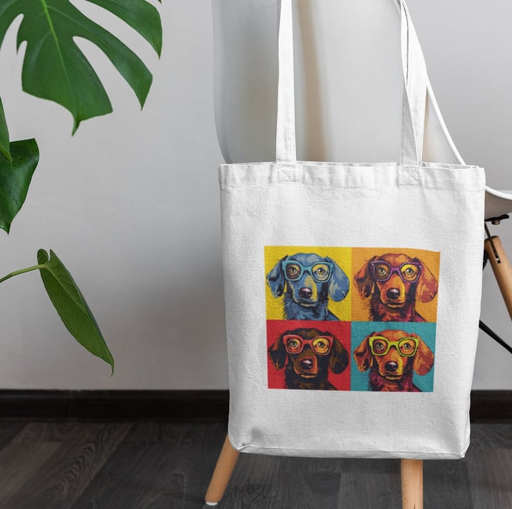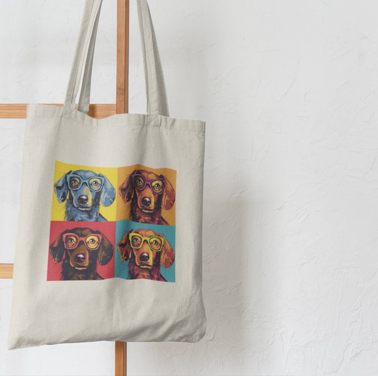 Add a splash of colour and personality to your daily outings with this eye-catching tote bag featuring a Dachshund in vibrant pop art style.