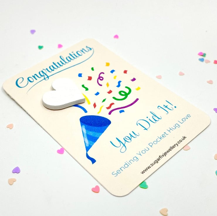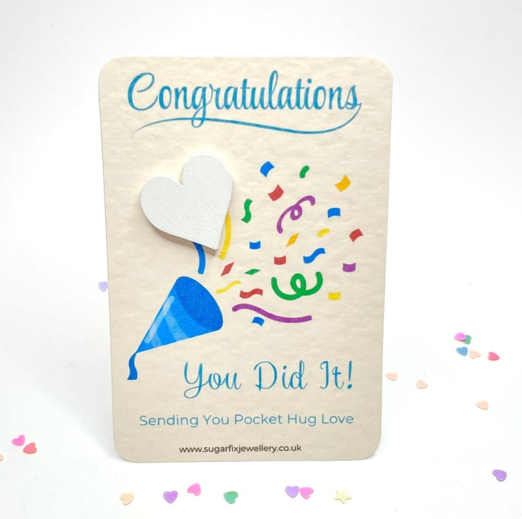 Congratulations white wooden Pocket Hug - You Did It! - New Job - New Home - Exams - Driving Test and many more occasions!