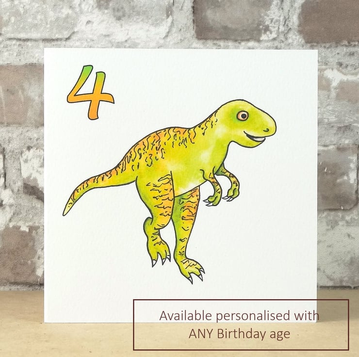 This white eco friendly dinosaur card can be printed with ANY AGE from 1 to 110 as seen in photograph above, just put age required in options when you order.
