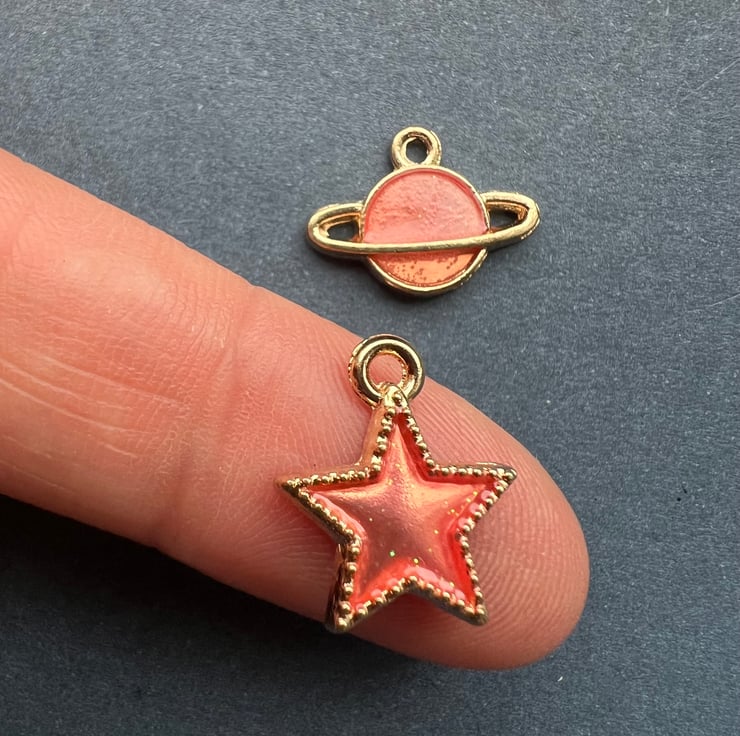 Elevate your jewellery-making and crafting projects with our exquisite Enchanting Celestial Charm Set. This set of 8 charms features a mesmerizing blend of coral and gold, adding a touch of celestial magic to your creations. Each charm is carefully crafted with a gold-color back, ensuring both quality and style. Here s what you ll find in this enchanting collection:
