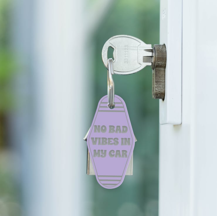 Welcome good energy into your car with our charming "No Bad Vibes" keyring! Crafted with high-quality materials and designed to uplift your spirits, this keyring serves as a gentle reminder to keep negativity at bay while you're on the road.