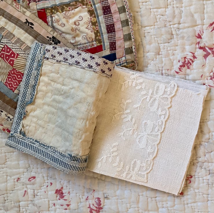 Please note that all the fabrics are vintage or antique, and may show signs of wear, commensurate with their age. Please do not purchase if you like your vintage fabrics to be perfect.