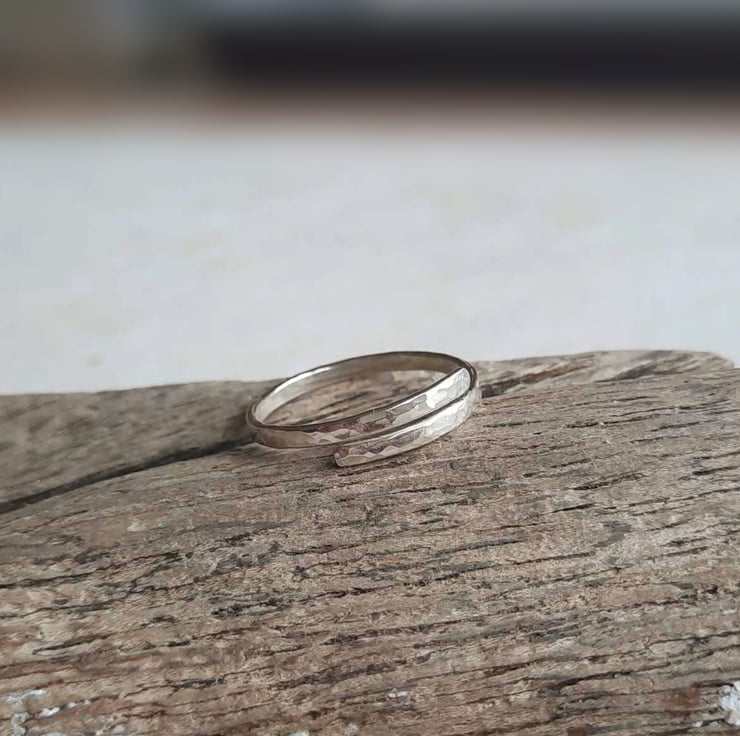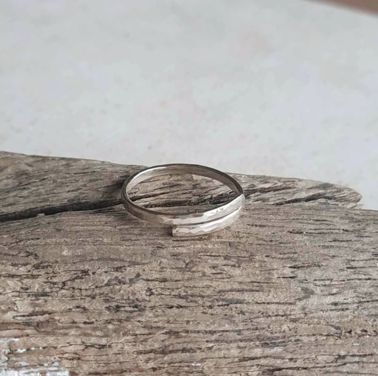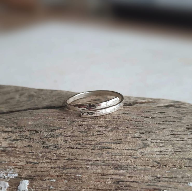 Hammered Recycled Sterling Silver Wrap Around Ring - Adjustable Band
