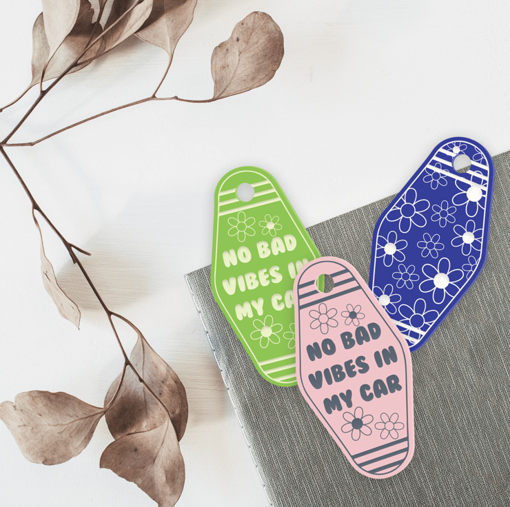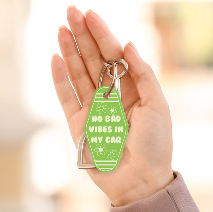 No Bad Vibes In My Car Flower Design, Car Accessory, Motel Keyring, Small Gift