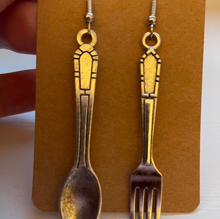 Fork and spoon droplet earrings