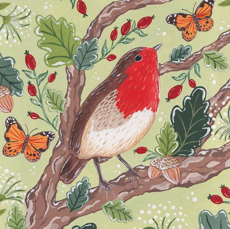 The robins where I live are so friendly and very tame. I really wanted to capture their inquisitive nature and the sense of joy that they bring.