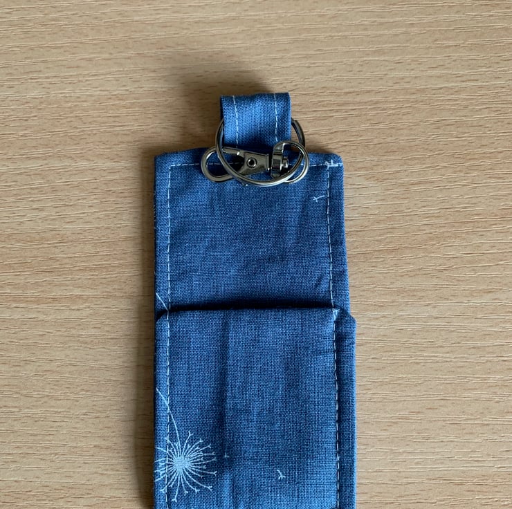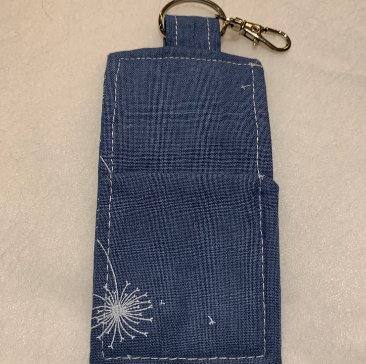 Unique lip balm (or lipstick) holder. Keep your lip balm to hand wherever you are. This blue denim look fabric with white dandelion clock detail is subtle and cute.