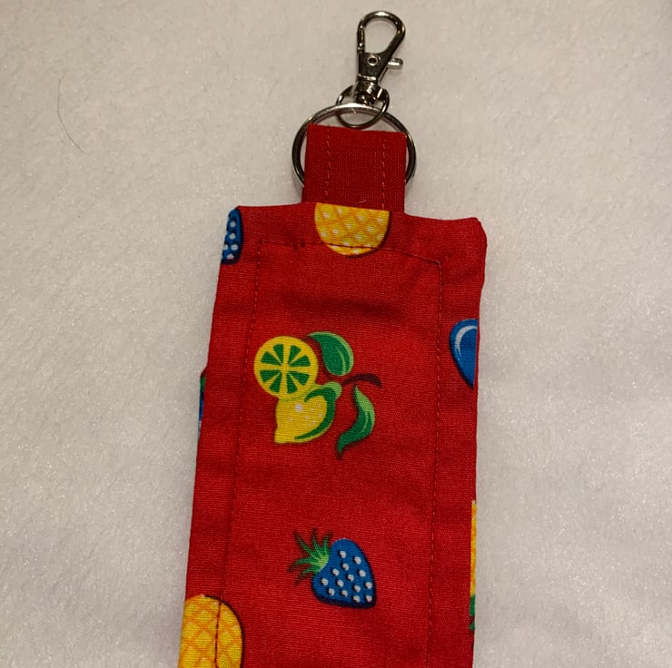 Fruity! This handy little pouch attaches to your bag, or your keys, so you're never without your lippy.