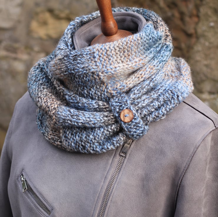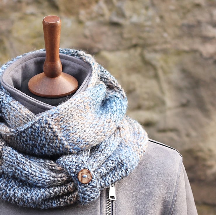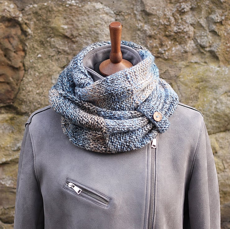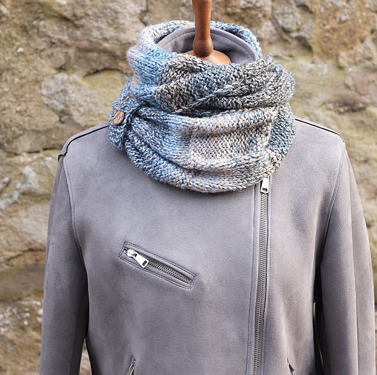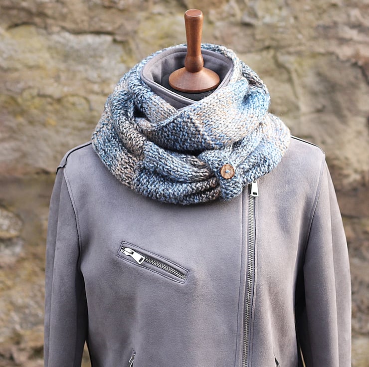 This adorable infinity scarf is hand knit out of super soft premium acrylic yarn.