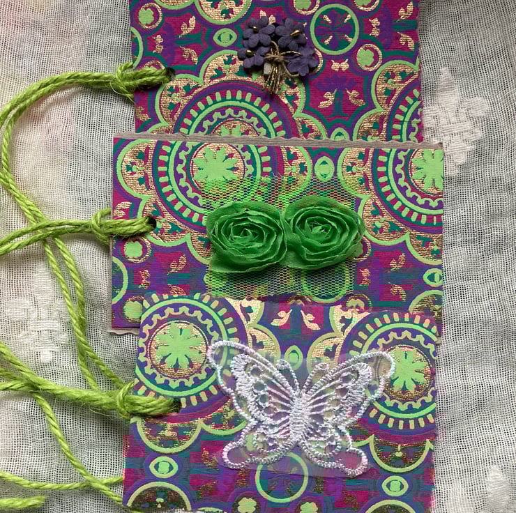 5 are folded over tags with colourful jute string attached and 3 are single sided ( see last photo in gallery )