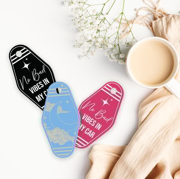 No Bad Vibes In My Car Moon Design, Car Accessory, Motel Keyring, Small Gift