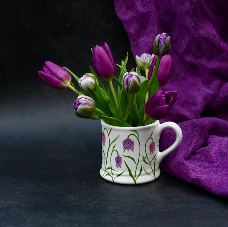 This Snake’s Head Fritillary Country Mug is hand painted by me with these pretty delicate flowers all around the mug.