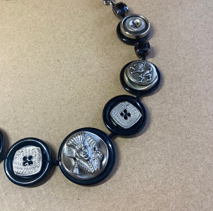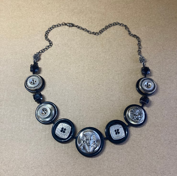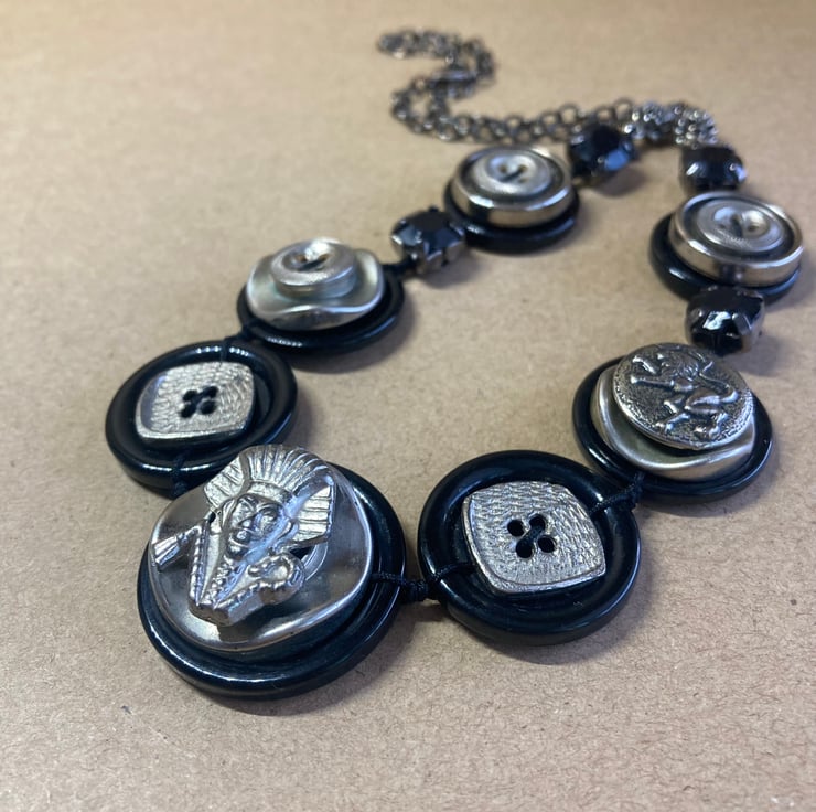 Egyptian inspired Tutankhamun Vintage Button Upcycled Necklace - One of a Kind