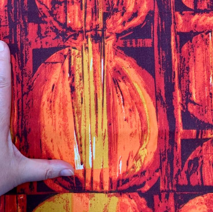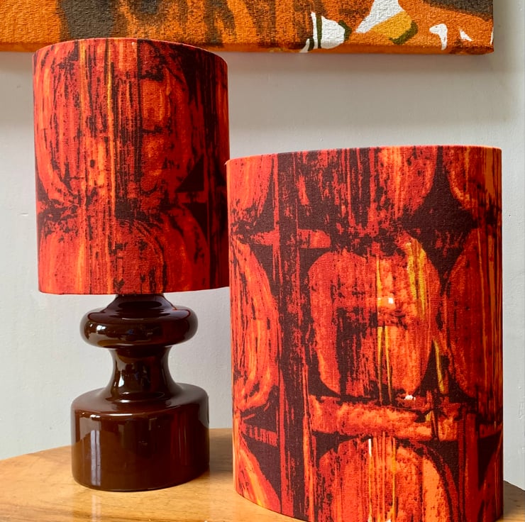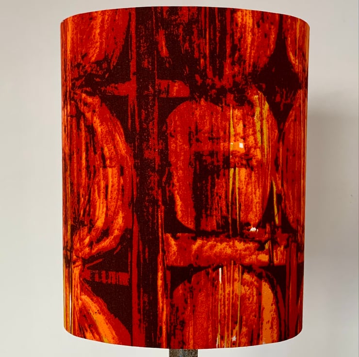 Mid Century ORANGE 50s 60s INTAGLIO Fidelis Robert Tierney Vintage fabric Lampshade - A bold feature in either a modern or retro setting.