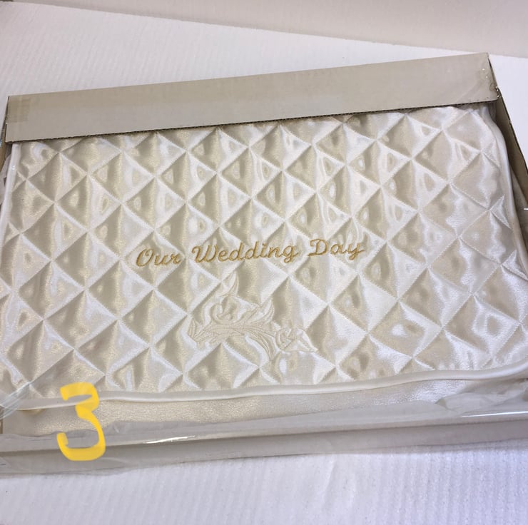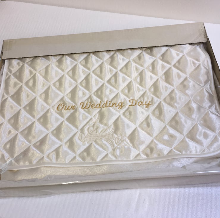 Satin Case for Keepsakes and Memorabilia, Embroidered with ‘ Our Wedding Day ‘
