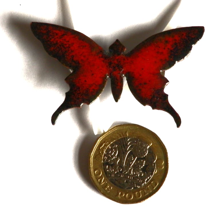 The butterfly measures 48mm from tip to tip of its upper wings, 28mm from the tip of the upper wings to the tip of the lower pair. I have soldered a 60mm brooch bar to the reverse of the butterfly. The brooch pin secures with a rotating catch.