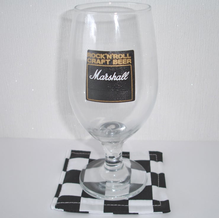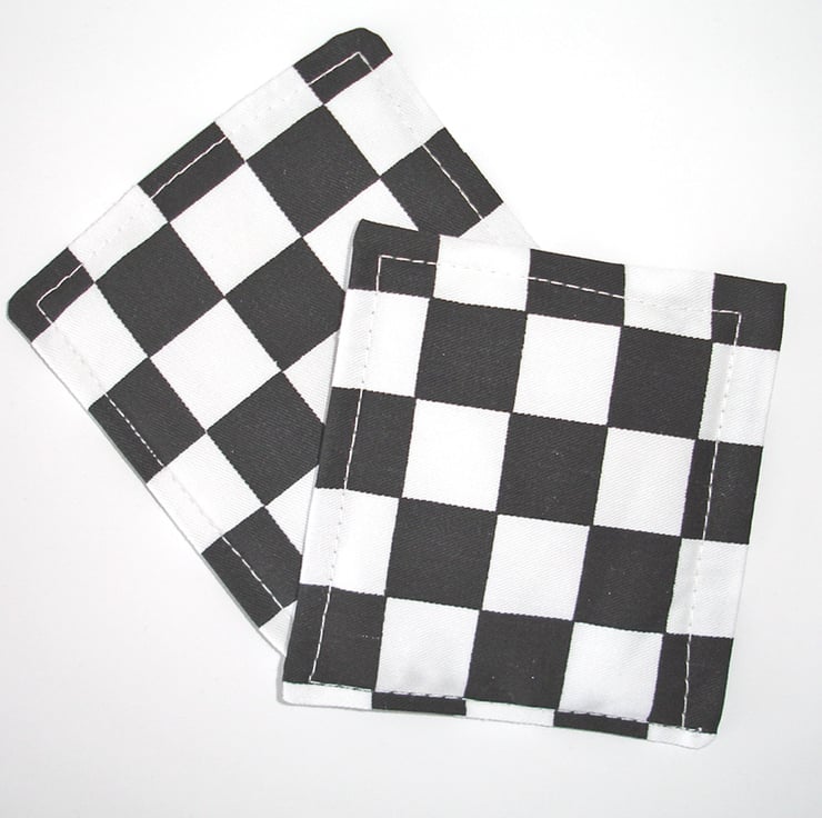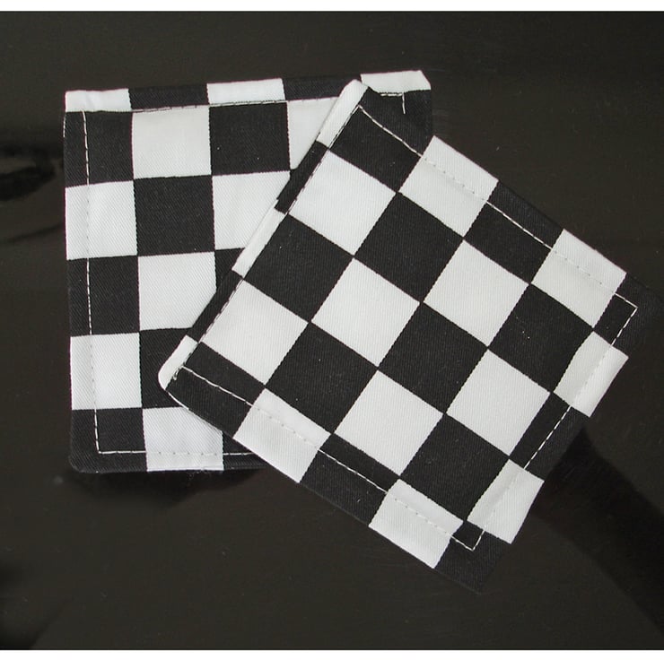 Coasters Black and White Ska Check Monochrome Pair of Fabric Mug Rugs