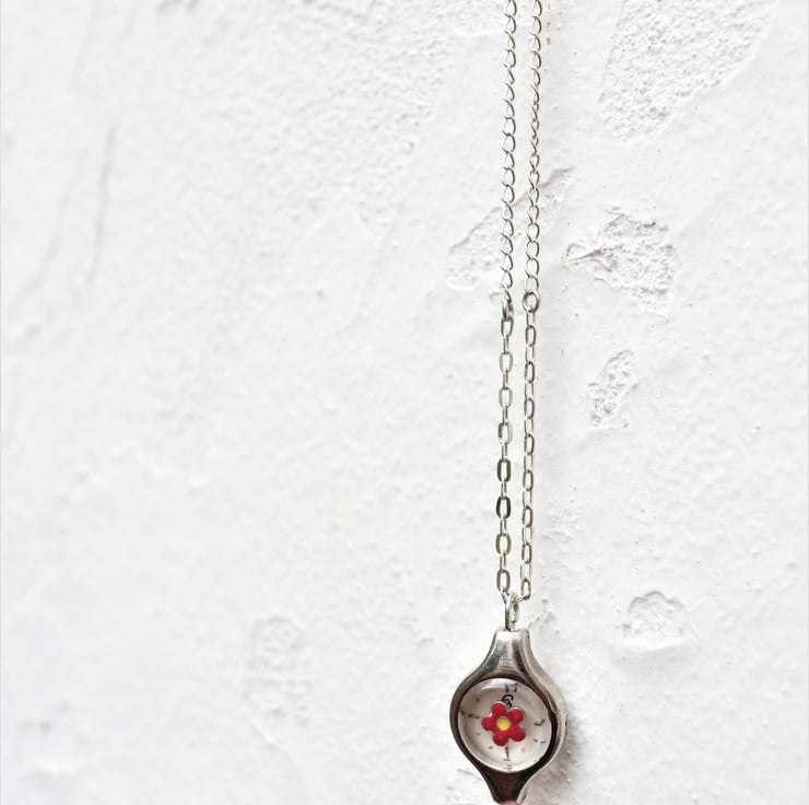 Upcycled ladies watch parts decorated with flower bead and cat eye bead necklace