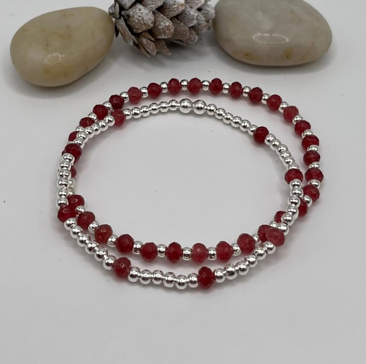 Hand made stack of two crystal agate and silver plated stacking bracelets