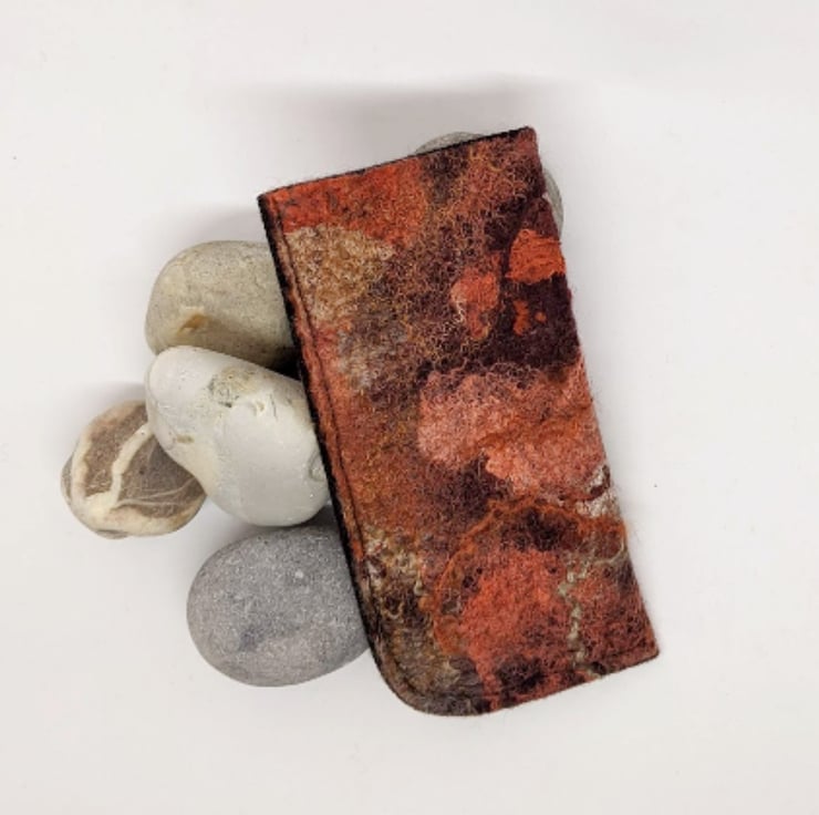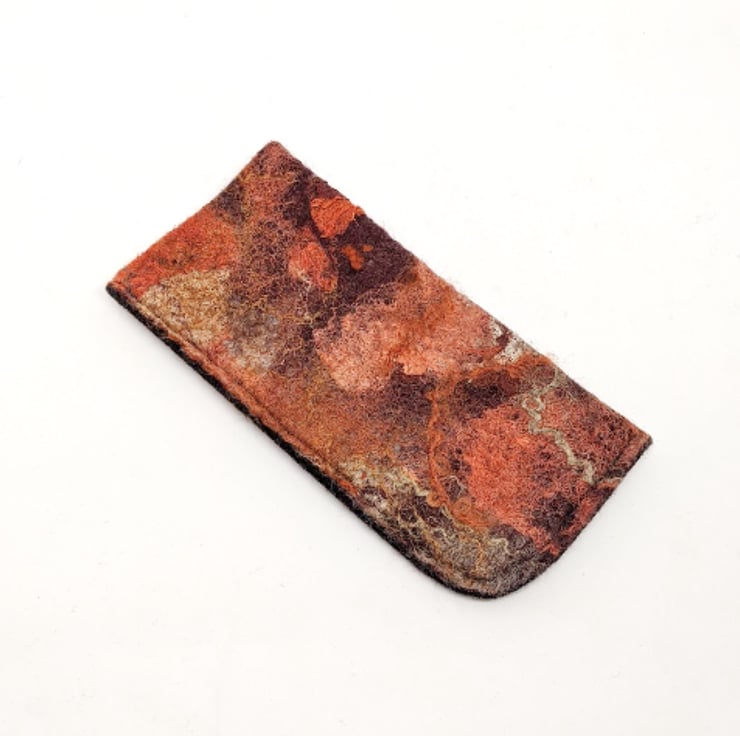 I make these in batches from one (unrepeatable) sheet of handmade felt, so each case will vary slightly.