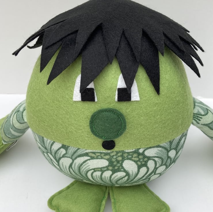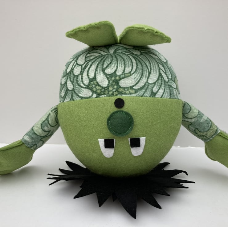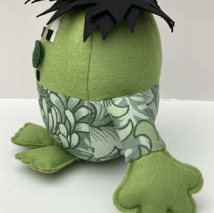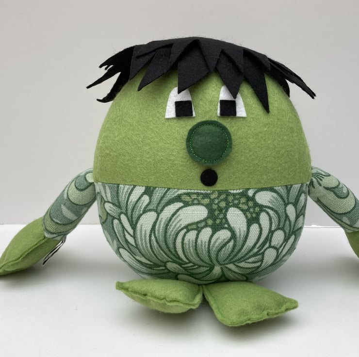 George is handmade by myself using original 1970’s Jonelle linen fabric called Medway designed by William Morris and wool felt.