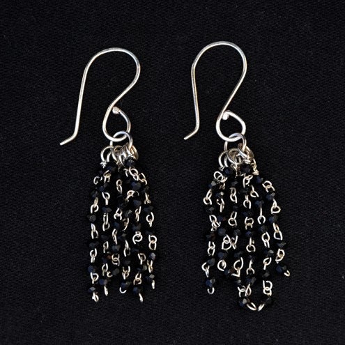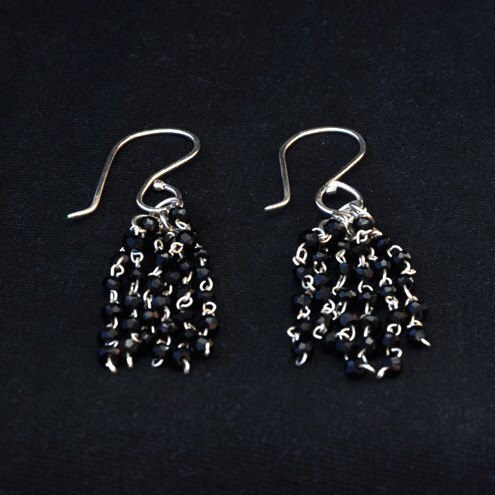 Each strand of black spinel is meticulously linked using high-quality sterling silver wire, creating a delicate yet durable design. The earrings are finished with handmade sterling silver ear hooks. Despite their dramatic look, these lightweight dangle earrings are designed for all-day wear without pulling on your ears.