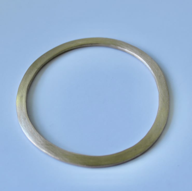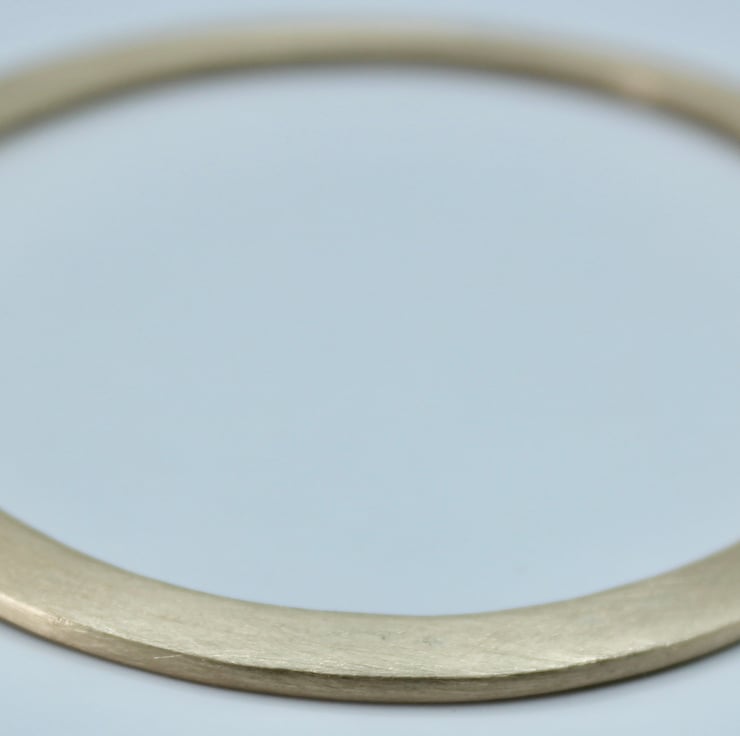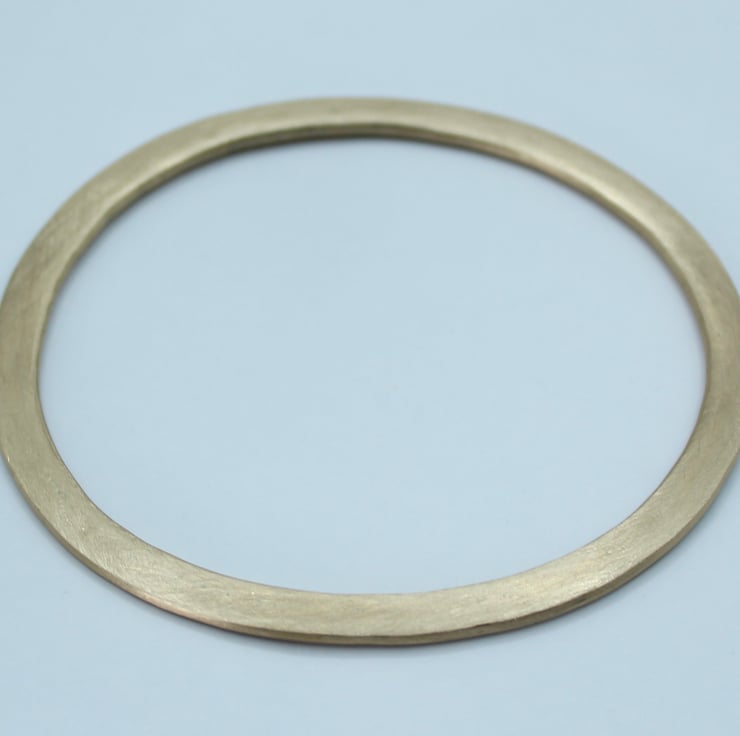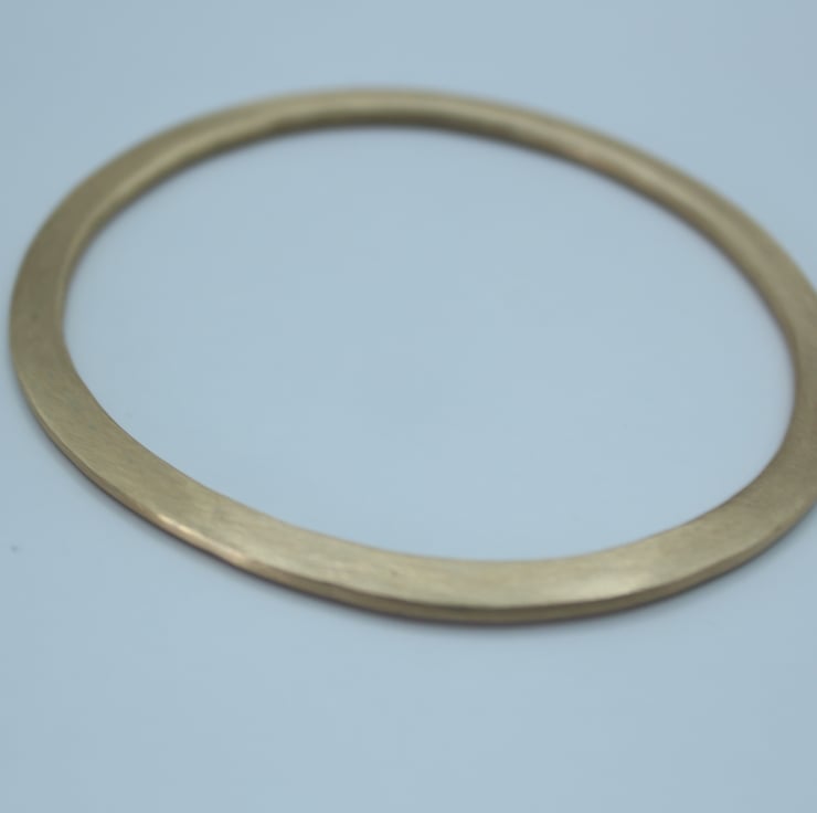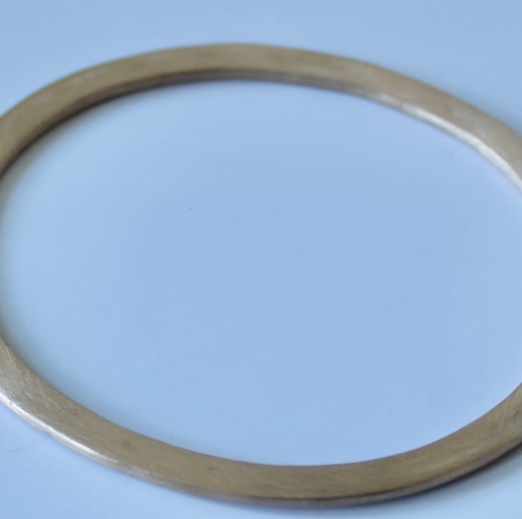 This smooth, matt bangle has been made with what's referred to as blonde bronze, so it has more of a honey tone to it than the bronze that we often see with statues. It feels really lovely to touch and has a great, tactile quality to it.
