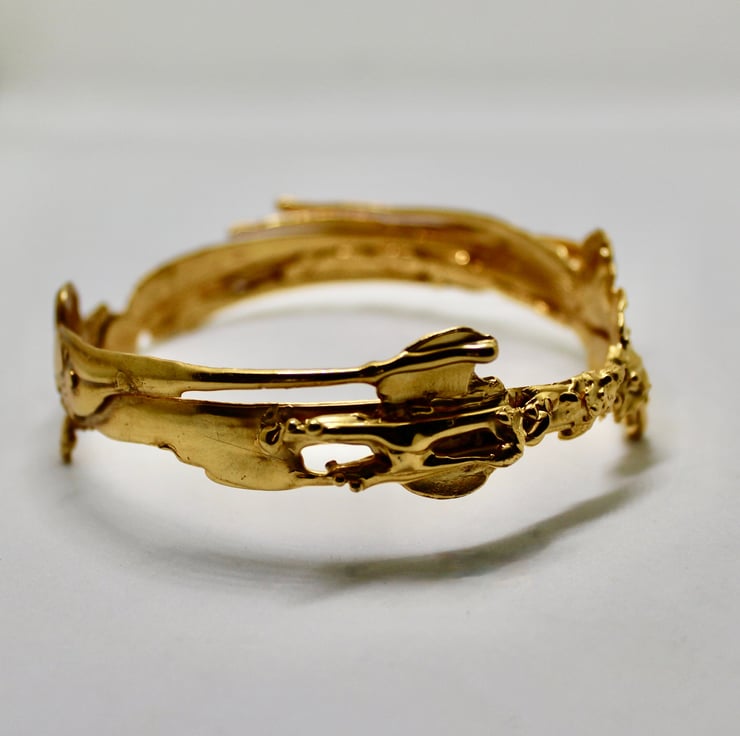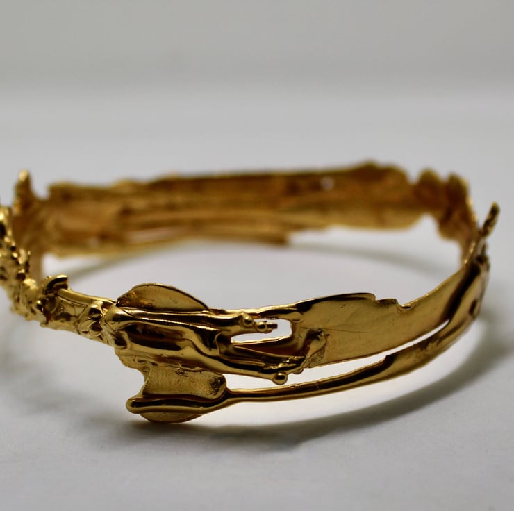 This beautiful handmade bangle was initially made in wax which enabled me to achieve the fluid, flowing look. It really is a one of a kind piece as it would be pretty impossible to make a piece that is exactly the same.