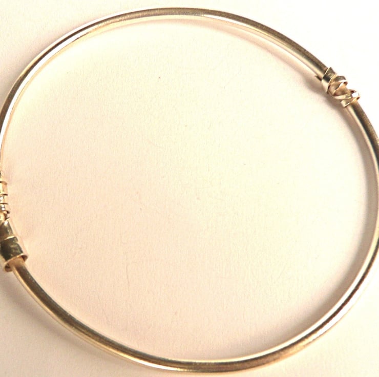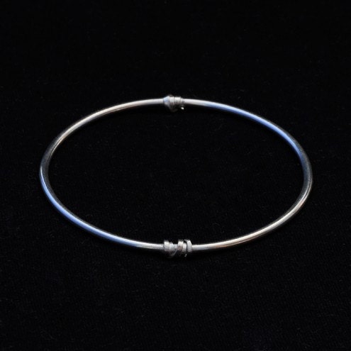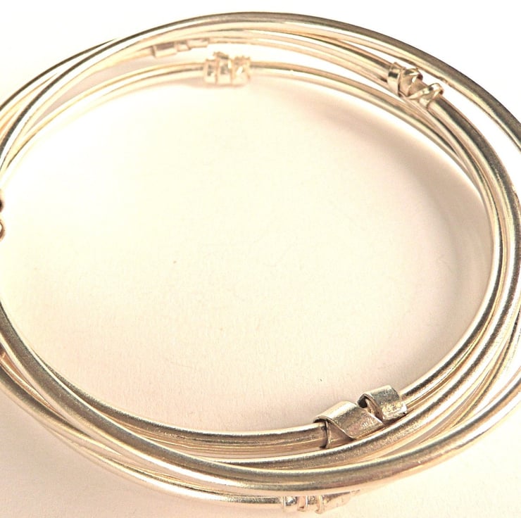 This lightweight handmade silver bangle is perfect for everyday wear. Comfortable and stylish, it will complement any outfit and looks great on its own or worn stacked with other bangles. Made from recycled silver, twists of silver are wrapped around for added interest.