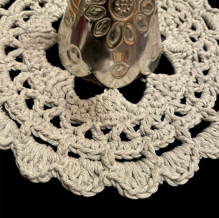 This Vintage Doily parters is Crocheted Grey Doily that compliments candles and other decorations while also protecting your surfaces.