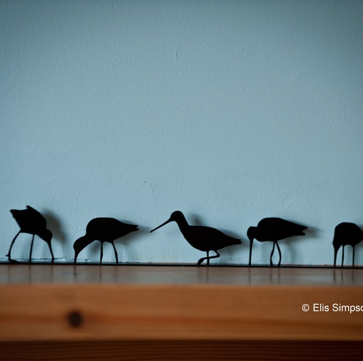 This fabulous flock of Godwits is designed by Elis Simpson from Wader Quest.