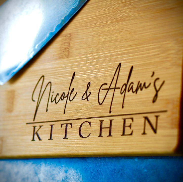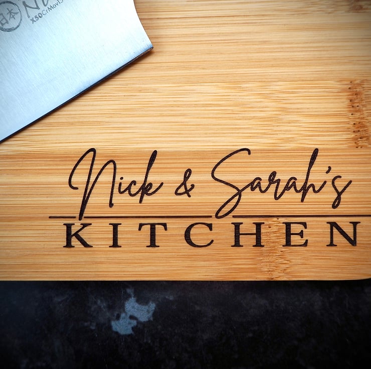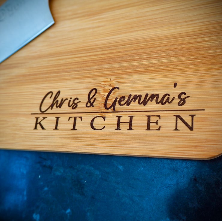 Personalised Bamboo Chopping Board. Bamboo is extremely strong and durable but must not be left in water. These boards will give years of excellent use if oiled regularly with mineral oil. Dimensions are 30cm x 20cm x 1cm