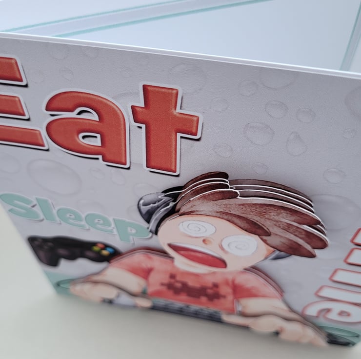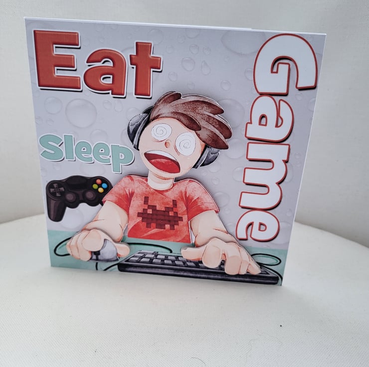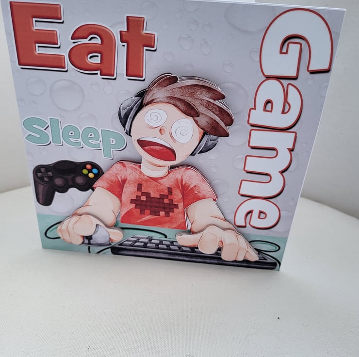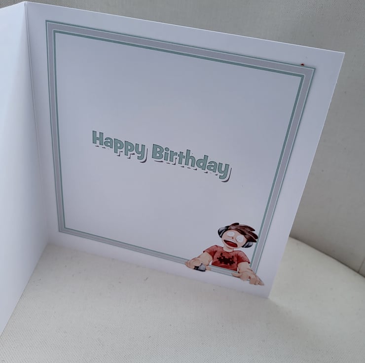 This is the perfect card for any gamer . It measures 7 x 7 the player has been layered up for a 3d effect. Inside the card reads Happy birthday. I can put in a blank insert if you prefer.