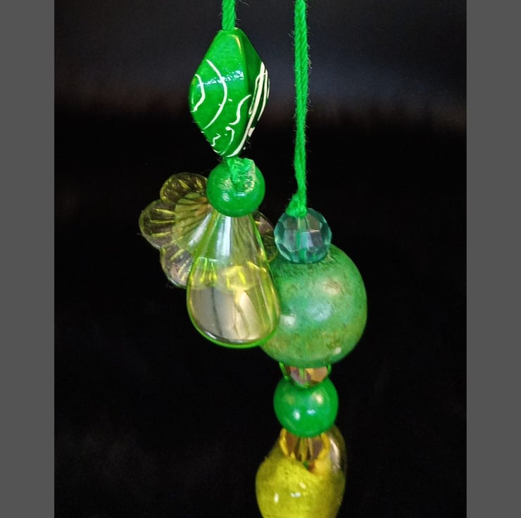The elasticated wraps are meticulously hand-crocheted from cotton that complements each Dingly Dangly. The varied, textured beads, combining reclaimed and new, are chosen especially and threaded by hand..